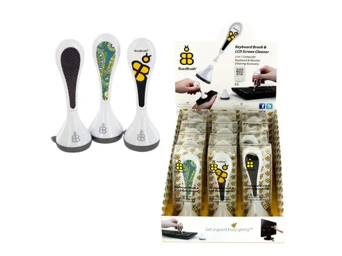 The BuzzBrush 2-in-1 Keyboard & Screen Cleaning Tool is designed to effortlessly eliminate dust and debris from your keyboard and screen. This versatile cleaning solution includes a gentle flat base specifically for screens and a bristle brush integrated into the handle for precise cleaning between keyboard keys.