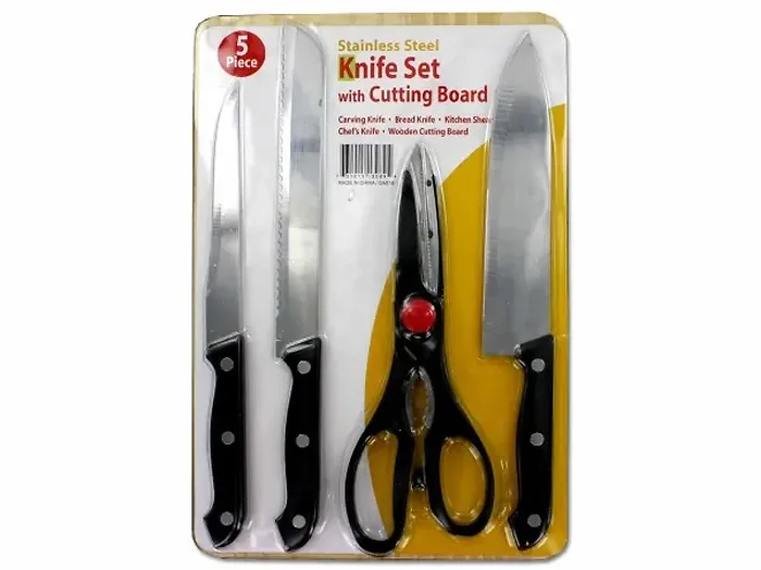 Essential 5 Piece Kitchen Knife Set with Cutting Board