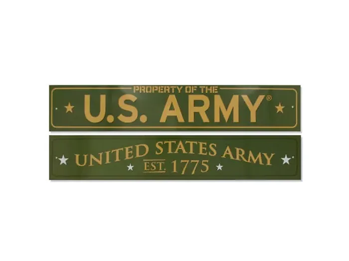Showcase your dedication to the U.S. Army with this Officially Licensed Horizontal Wall Sign. Crafted from durable tin, this sign features striking army graphics and is designed with punched out holes on the sides for hassle-free wall mounting. With approximate dimensions of 17 inches by 3 inches, it is perfect for any wall in your home, office, or man cave.
