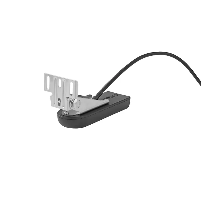 The 12-pin transducer features high wide band CHIRP traditional sonar (150-240 kHz) and has a power rating of 250 W. The CHIRP DownVu and CHIRP SideVu (455/800 kHz) elements have a power rating of 500 W each (1,500 W total).