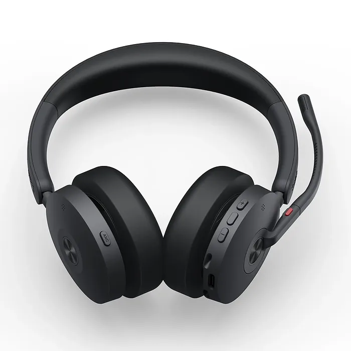 This headset features a USB-A/C Bluetooth dongle for easy connectivity, making it ideal for both desk and mobile use. Its sleek design and advanced noise-canceling technology ensure you can focus on your calls without distractions.