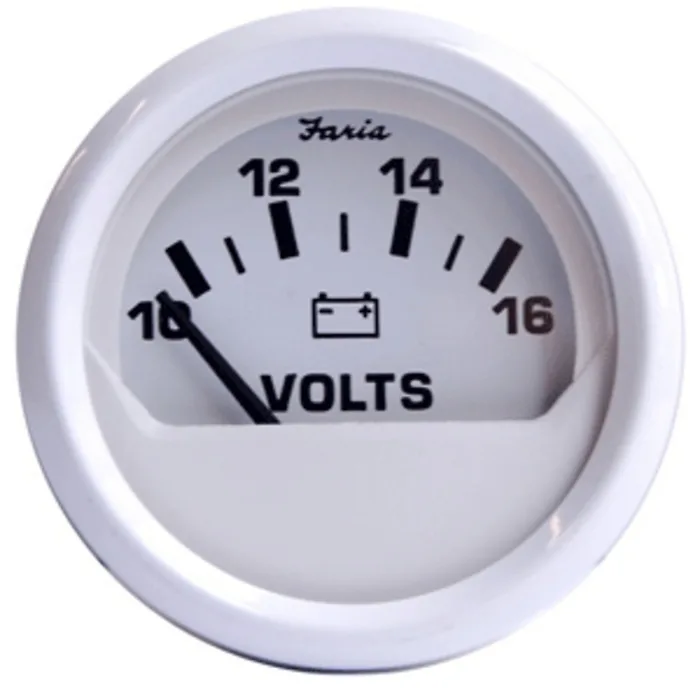 Faria Dress White 2" Voltmeter (10-16 VDC)