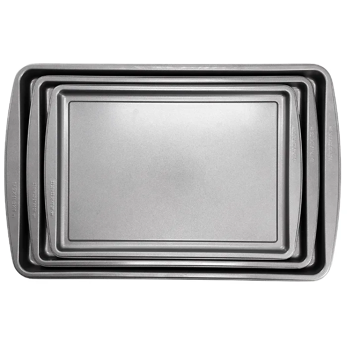 Gibson Home Love To Bake Nonstick Steel Jelly Roll 3 Piece Baking Sheet Set in Gray