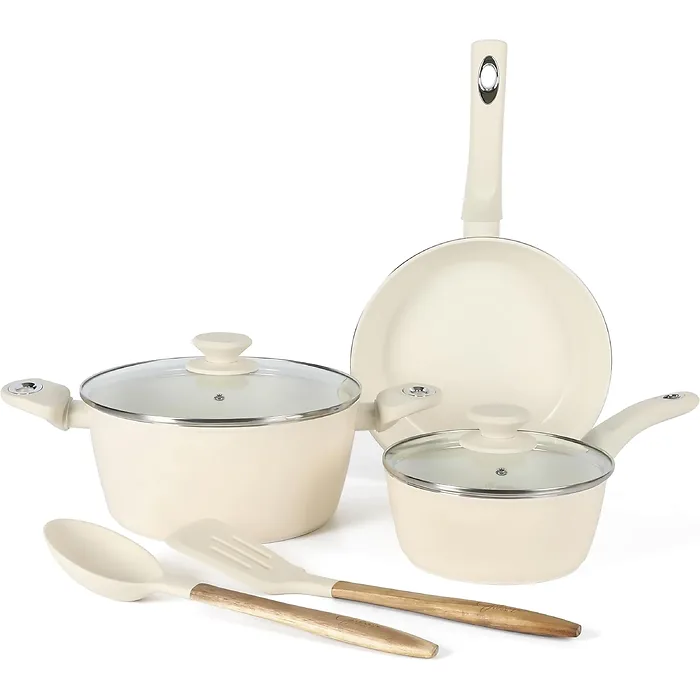 Gibson Home Plaza Cafe 7 Piece Forged Aluminum Cookware Set in Linen