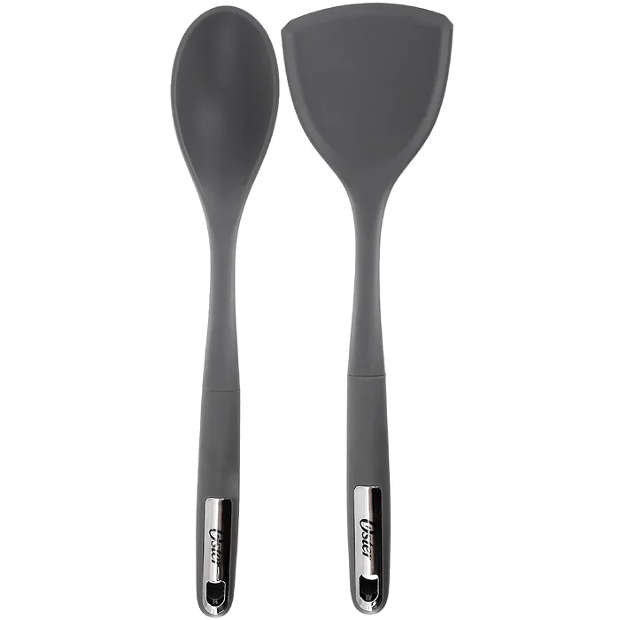 Oster Ridgecrest 2 Piece Silicone Kitchen Tool Serving Spoon and Turner Set in Gray