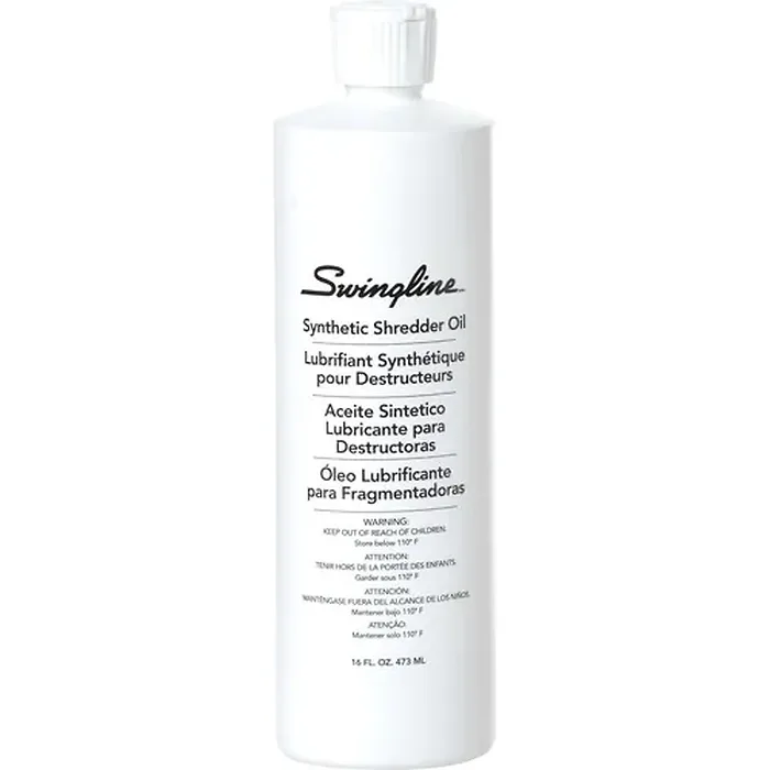 Compatible with any shredder, this oil lubricates the cutters to ensure best shredding performance. This oil is a synthetic blend that will not cause buildup on shredder parts. By reducing torque and allowing cutters to move freely, the oil helps to reduce the risk of paper jams. For high-level performance with a SelfOil shredder, simply pour the oil into the shredder's designated oil reservoir. To use with standard shredders, pour a few streaks of oil on a sheet of paper and run it through the shredder.