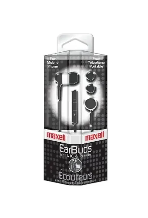 Maxell In-Ear Earbuds with Microphone and Remote - Stereo - Mini-phone (3.5mm) - Wired - 16 Ohm - 20 Hz - 20 kHz - Earbud - Binaural - Open - 4 ft Cable - Black