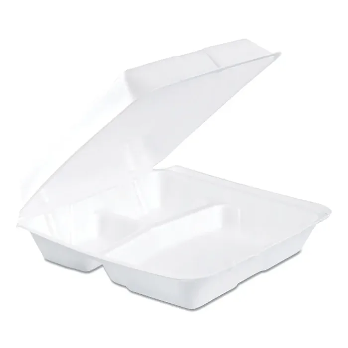 Our Foam Hinged Lid Containers offer a convenient and reliable way to serve and store food. With a one-compartment design, these containers measure 6.4 x 9.3 x 2.9 inches, making them perfect for takeout, catering, or meal prep.