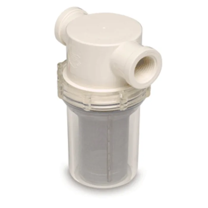 SHURFLO's family of Raw Water Strainers are built to keep your bait tank, livewell and washdown pumps protected from harmful debris. The Raw Water Strainer features a clear twist off bowl and removable stainless steel screen, which allows for easy inspection and cleaning. An integral o-ring creates a tight seal, eliminating possible leaks. Keep your pumps and components lasting longer by protecting them with the SHURFLO Raw Water Strainer. 1 Year Warranty