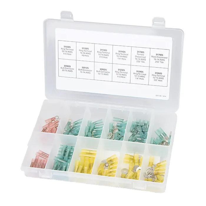 This comprehensive wire management kit includes 160 premium heat shrink terminals and connectors, perfect for various electrical applications.