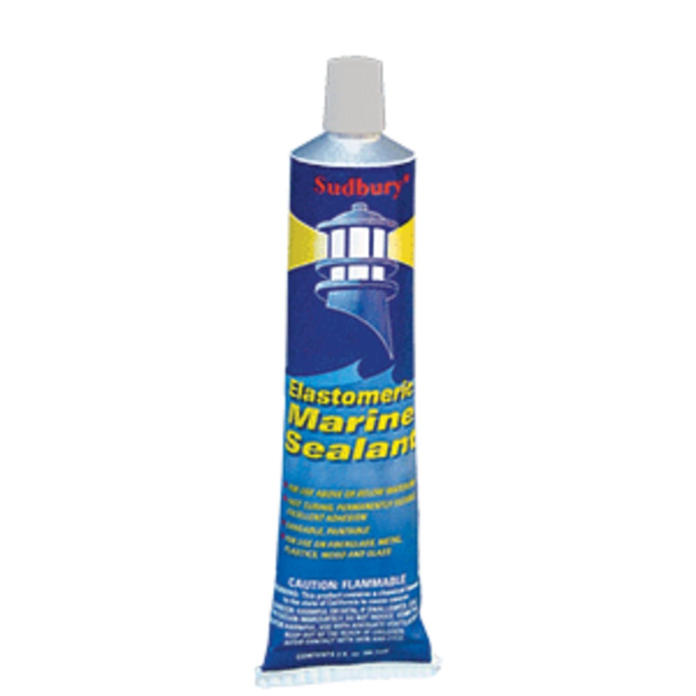 A one-part, fast skinning (10 minutes) and fast curing (24 hours) multi-purpose marine grade sealant with superior strength, adhesion, elongation and life characteristics. Cures in temperatures of -20°F (-28.9°C) to 120°F (-48.9°C) and can be wet sanded and painted after curing. Flexibility and compression capabilities are excellent. Heavy duty use above or below the waterline. Twists, bends, expands, compresses. Seals ports, beds hardware, stops leaks. Resistant to teak cleaners, oil, diesel fuel and salt water. Adheres tenaciously without primers to fiberglass, glass, plastic, metal and wood. Simple clean up with mineral spirits. Not recommended for wooden deck seams or use in areas subject to gasoline.