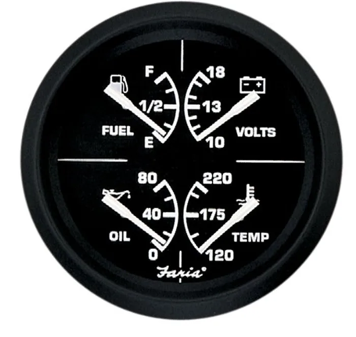 Faria Euro Black 4" Multifunction Gauge - Volt/Fuel/Oil/Water Temperature