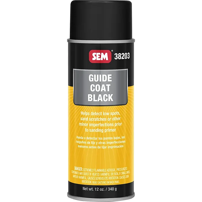 The SEM Guide Coat is a high-quality aerosol spray that allows for easy detection of low spots, sand scratches, and other minor imperfections while sanding primer. This guide coat is essential for achieving a flawless finish in automotive repairs and refinishing.