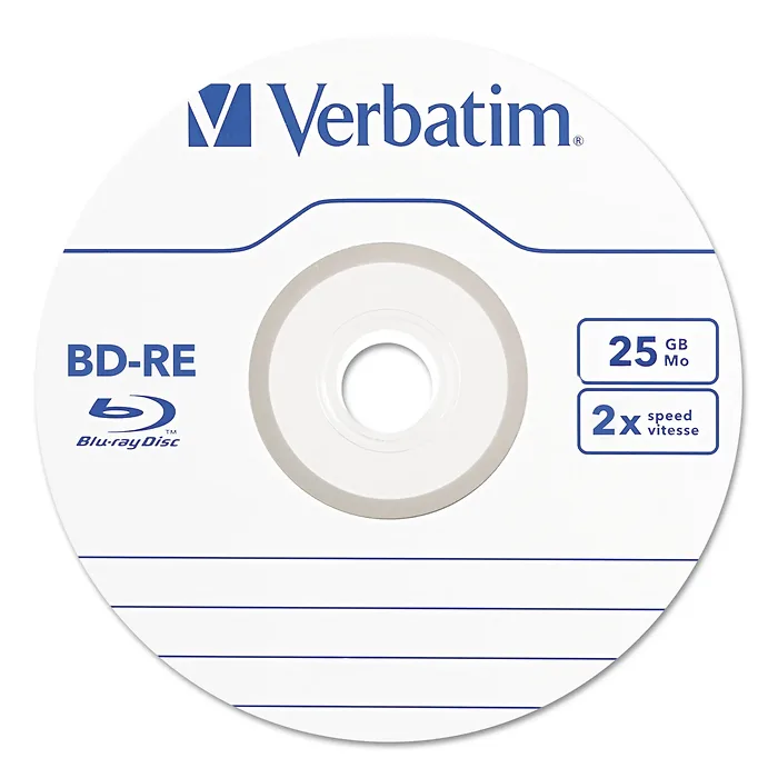 This is a OEM OPTICAL DISKC/CDR VERBATIM brand CD/DVD Supply (BR-RE DISC)(BLU-RAY DISCS). Product Features: Media Included Qty: 10 Native Capacity: 25 GB Package Type: Spindle Product Description: Verbatim - BD-RE x 10 - 25 GB - storage media Type: Storage media - BD-RE Write Speed: 2x (max) Key Selling Points:, Rewritable format for HDTV recording and PC data storage, Utilizes a blue-violet laser to read and write data allowing for more data storage on a disc with the same size as a CD/DVD, Wide power margin of Verbatim BD-media ensures superior drive compatibility, Super hard coat protects data from scratches, BD-RE recording hardware is required for recording, Blu-ray player can also be used for BD-RE media playback Benefits of this product: For those looking for the performance and stability of Blu-Ray Recordable media, but who want the flexibility to add to or overwrite their video, music or data, Blu-Ray Re-Writable discs are the solution. Designed to store 25GB of HD video and audio files, BD-RE discs can handle up to 1080p resolution videos and multiple audio formats. All Verbatim BD-RE media feature HardCoat to protect against scratches, fingerprints and dust build-up, reducing playback and recording errors. Compatible with standard BD-R hardware and recorders from leading manufacturers, these discs are ideal for backing-up video and music collections. Product Data Sheet Product Data Sheet This verbatim bd-re sl brand 10pk 25gb/2x wht spindle is a great data storage > disc item at a reduced price under $30 you can't miss.