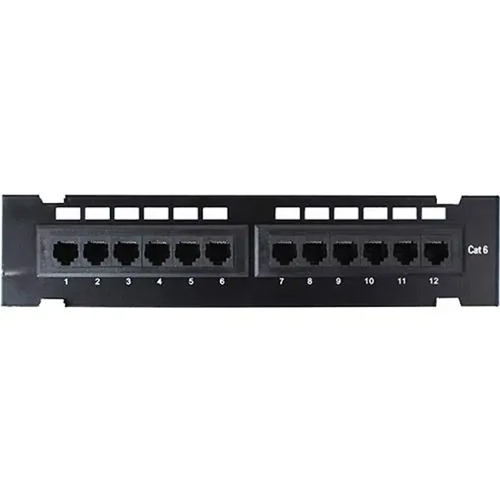 12-Port Cat6 Wall Mount Patch Panel - 568B RJ45 Design