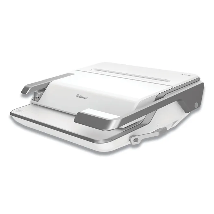 Ideal for large offices - features 1-step, worry-free thermal binding. Binds up to 600 sheets in one step. 1-3 minute thermal binding cycle with 4-minute heat-up time. Auto document thickness detector selects thermal ginding settings for the user. HeatShield safety barrier prevents accidental contact with the heating plate. LED control panel ensures advanced thermal binding machine is user-friendly. Audio/visual indicators signal when machines is ready or job is complete. Auto shut-off safety feature prevents overheating. Folds flat for storage; for use with thermal binding covers only.