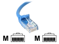 Technical Specifications Warranty : Lifetime warranty Connector A : 1 - RJ45 Male Connector B : 1 - RJ45 Male Color : Blue Product Length : 24.99 ft (7.62 m) Network Cable Type : Snag-less Length : 25 ft., 7.6m Connectors : RJ45 Male, RJ45 Male Package Dimension (L x W x H in inches) : 7.91" x 0.91" x 8.35" Package Weight : 0.6 lb (0.27 kg) Cable : 24 AWG, 4 pair UTP, CAT-5e tested to 350 MHz, type CM (UL) certified, Category 5e Features Clip protector keeps the plug from snagging while routing the cable Coloured Hoods for departmental colour coding StarTech Category 5e patch cables are carefully constructed and tested, to keep the Near End Crosstalk (NEXT) well within acceptable limits StarTech Category 5e Patch cables are constructed with top quality components The Strain relief prevents the cable from being bent at sharp angles at the connector to minimize the stress at the plug termination point Applications Connects workstation to wall outlet