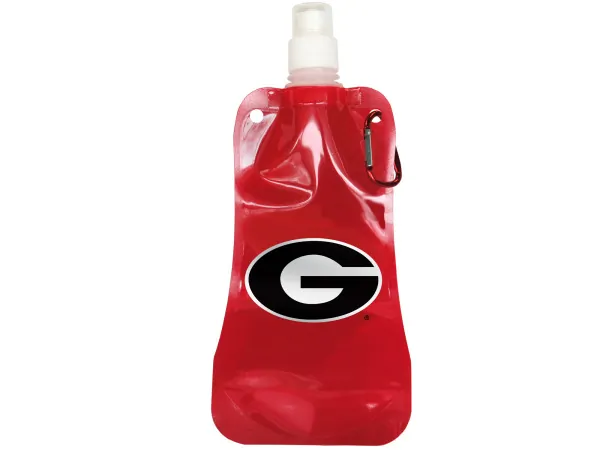 Great for biking, hiking, lunch boxes and workouts, this officially licensed Clemson University Foldable Water Bottle features a unique design that stands when full and folds when empty. It holds 16 ounces, has a pop-up spout and is reusable. Convenient carabiner clip makes it easy to carry when you are on the go. It can be flattened and rolled when empty, making it super portable. BPA free. Top rack dishwasher safe. Comes packaged in a hanging panel.