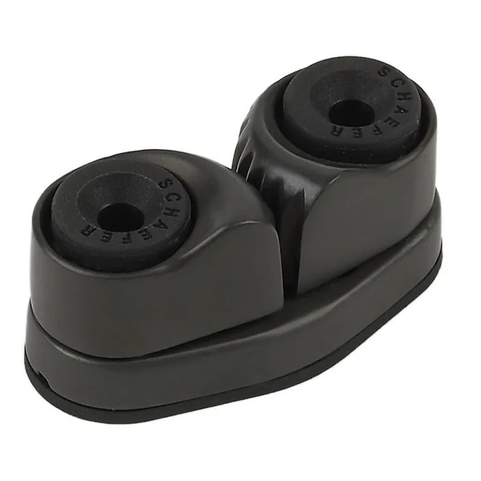 Fast Entry Cam Cleat. Features Die Cast Aluminum Cams, Delrin™ Ball Bearings, Computer Designed High Flare allows for easy entry at various angles. Safe Working Load 200 lbs (91kg) Line 1/8" - 5/16" (3mm - 8mm), Requires (2) #8 Flat Head Fasteners. 1 1/16" (27mm) Centers.