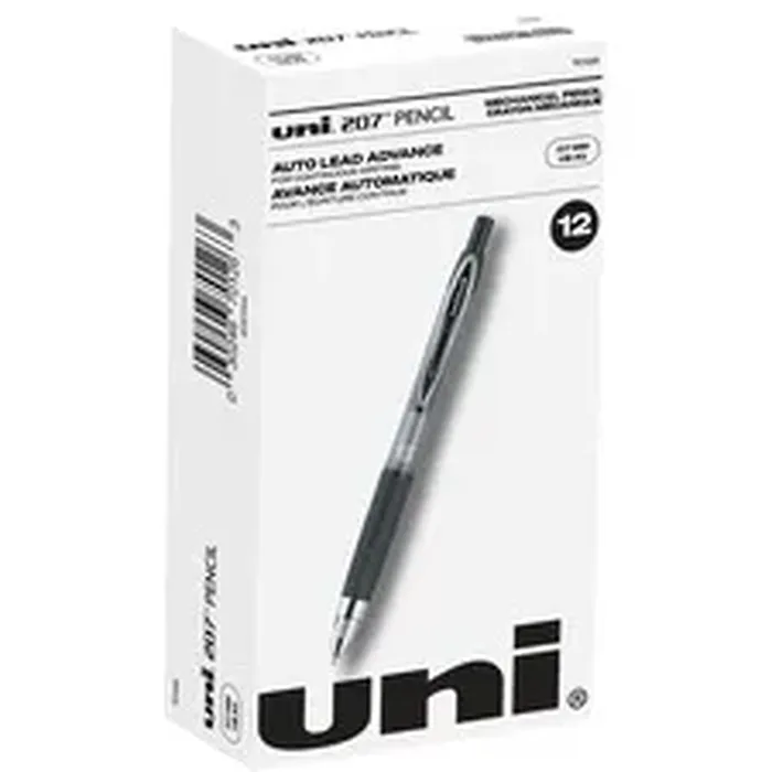 General InformationManufacturer:uni-ball Corporation Manufacturer Part Number:70126 Manufacturer Website Address:http://www.uniballco.com Brand Name:uniball™ Product Line:207 Product Name:207 Mechanical Pencils Marketing Information:Keep your thoughts flowing with auto-advancing, 207 Mechanical Pencils. The 0.7mm, HB No. 2 lead delivers strong, broad lines. Lead moves forward as you write to avoid pausing to advance the lead. Multifaceted eraser with 12 corners and sides allows quick, clean revisions. Shock-absorbing tip balances the changes in pressure as you write or draw to reduce breakage. Break-resistant pencils are ideal for drafting, schoolwork, art projects and note-taking. Comfortable grip reduces writing fatigue and assists with precision. Packaged Quantity:1 Dozen Product Type:Mechanical Pencil