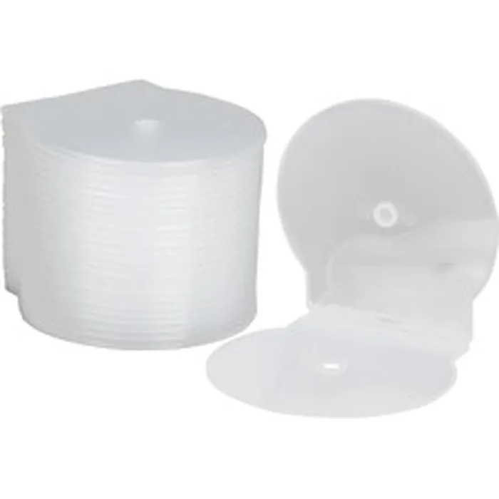 Clam-shell design storage cases organize and protect CDs and DVDs. Each plastic case holds one disc.