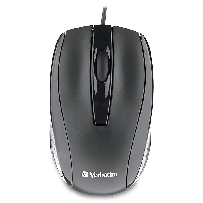 Verbatim Corded Optical Mouse - Black - Optical - Cable - Black - Scroll Wheel