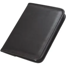 Zipper Pad Holder features softly padded vinyl with the look and feel of napa leather. Wraparound zipper provides security for important documents. The exterior offers sleek radius corners and a full-length exterior storage pocket. Interior features include expandable document pocket, zippered security compartment, four diskette pockets, two CD and business card pockets, and pen loop. Pad holder also includes a letter-size writing pad.