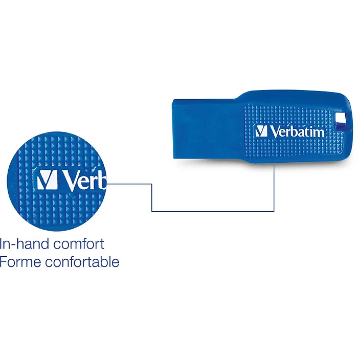 Verbatim 128GB Ergo USB 3.0 Flash Drive - Blue - The Verbatim Ergo USB drive features an ergonomic design for in-hand comfort and COB design for enhanced reliability.