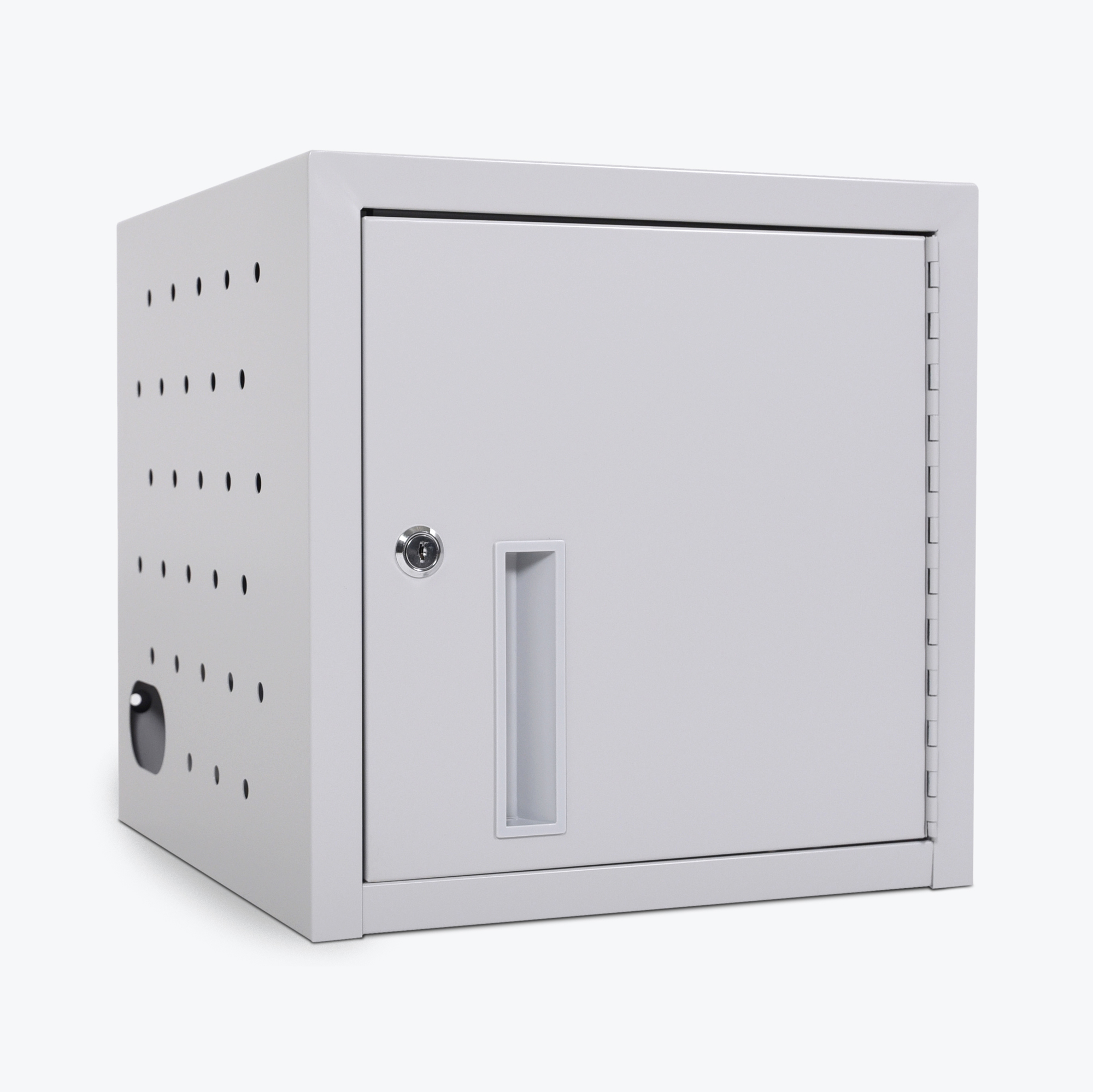 Do away with cord clutter while safely ensuring devices are always charged and ready for use. Perfect for small offices, classrooms and libraries, Luxor Wall / Desk Tablet Charging Cabinets provide a strong, simple design that's reliably secure yet affordably priced. A steel shell with lockable door coupled with a padded interior and rubber-coated dividers protect your devices, and the compact size makes Luxor Tablet Charging Cabinets great for wall mount or desktop use.