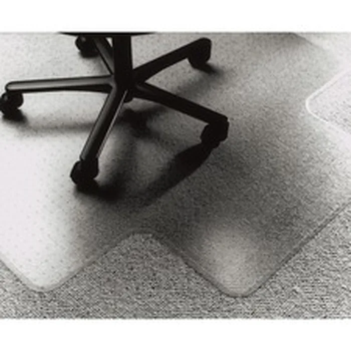 Heavy-duty chairmat is designed for use over high-pile, plush carpet. Clear vinyl chairmat features a 20" x 12" centered lip.
