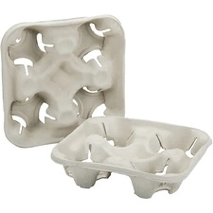 Perfect for take-out and to-go applications, these sturdy, four-compartment cup carriers are built to accommodate up to four cups or containers holding 8 to 32 oz. It suits all beverage needs. TAA-compliant cup carrier is made from pre-consumer waste molded fiber so it is rigid and lightweight for trouble-free transport. Trays nest for compact storage.