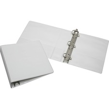 Slant-D ring view binder features a clear overlay on front, spine and back cover. Ideal for presentations. Clear overlay allows easy customization by insertion of printed materials. Three Slant-D rings accommodate 20 percent more letter-size punched paper than traditional round rings. Pockets on the inside of the front and back cover are designed to store unpunched and loose papers. Vinyl binder offers heavy-duty vinyl covers and boards that resist tearing and cracking. Binder is manufactured using a Bisphenal-free (BPA) process.