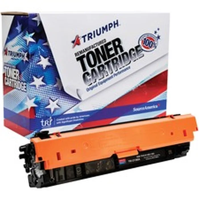 Remanufactured toner cartridge is designed for use in HP Color LaserJet Enterprise M533dh, M533dn, M533n, M553x; Color LaserJet Enterprise MFP M577f, MFP M577dn; and Color LaserJet Enterprise flow MFP M577z. AbilityOne toner provides strategic opportunities to address a variety of customer needs including significant savings, guaranteed performance, compliance with executive orders and free recycling solutions. Plus, every purchase creates jobs for people with disabilities. TAA-compliant cartridge is assembled in the U.S.A., made using 35 percent post-consumer content and meets ISO 14001 recycling standards. It yields approximately 6,000 pages.