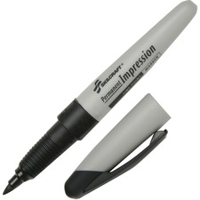 Fine-point permanent marker is designed for writing, drawing, lettering and sketching on most hard-to-mark surfaces. Tip stays firm and sharp. Barrel is gray with molded plastic pocket clip. Cap matches the ink color. Quick-drying, high-intensity ink is waterproof, smear-proof and fade-resistant.