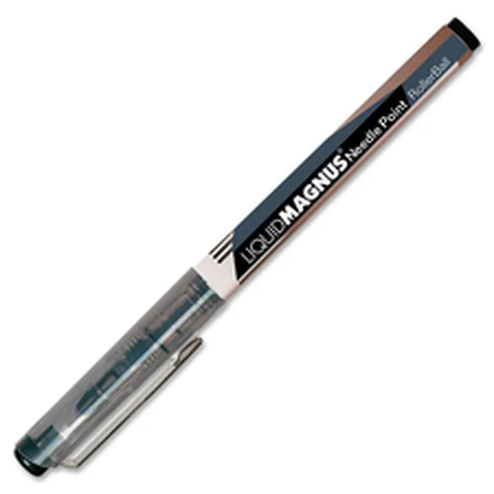 Needlepoint rollerball pens with liquid ink deliver precise lines. Permanent, nonfading, acid-free, liquid pigmented ink applies smoothly and precisely every time. Liquid Magnus rollerball pen includes ink supply window to monitor ink levels. Endcap identifies color of ink.