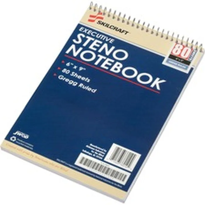 SKILCRAFT Executive Steno Notebooks - 80 Sheets - Spiral - 0.38 Ruled - Gregg Ruled - 15 lb Basis Weight - 6 x 9 - White Paper - Chlorine-free, Durable Cover - 12 / Pack