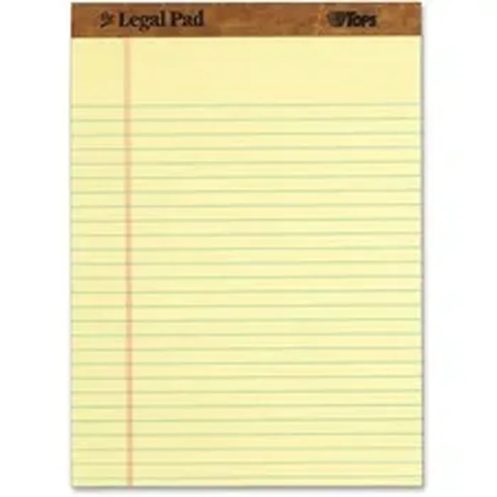 TOPS Letr-trim Perforated Legal Pads - 50 Sheets - Double Stitched - 0.34" Ruled - 16 lb Basis Weight - 8 1/2" x 11 3/4" - Canary Paper - Perforated, Hard Cover - 1 Dozen