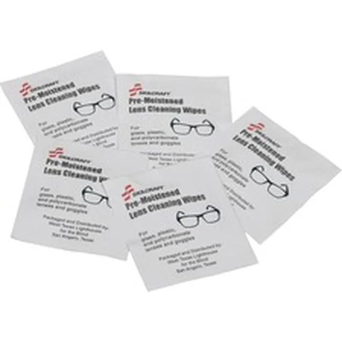 Prolong the life of your lenses with convenient, individually wrapped towelettes that leave safety glasses clean and streak-free. These anti-static, anti-fog, silicone-free wipes are great for cleaning glass, plastic or polycarbonate lenses; face shields; goggles; computer screens; and microscope lenses. Convenient dispenser boxes contain 100 pre-moistened, 5" x 8" lens wipes that are folded to easily fit into your pocket.