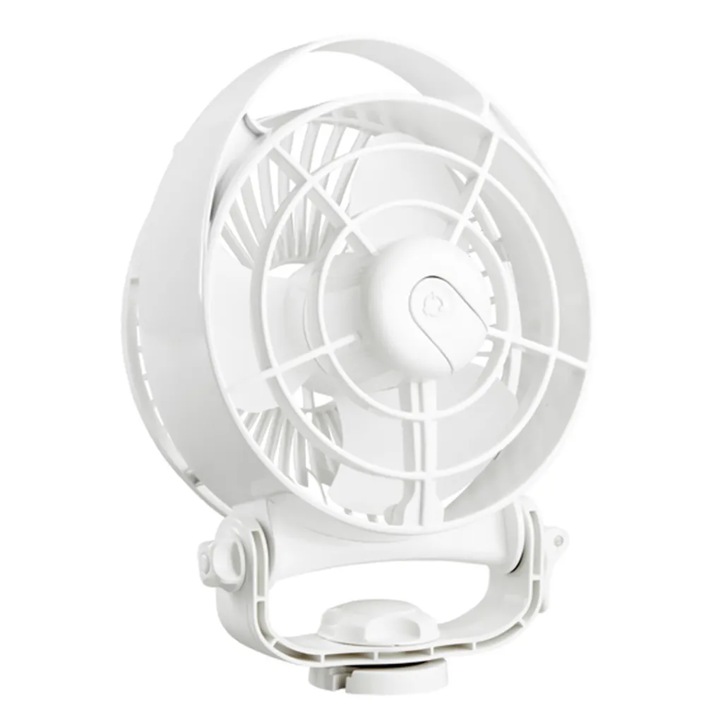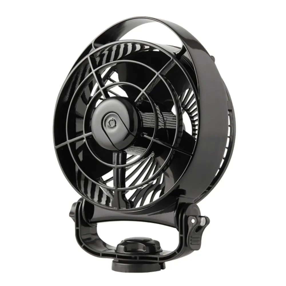 Cool comfort wherever you are. The model 827 Tiny Tornado is a premium, battery-powered portable fan that can be used anywhere on or off the boat. The suction cup base attaches securely to any smooth surface in the boat and an adjustable tilting head directs airflow wherever it is needed.