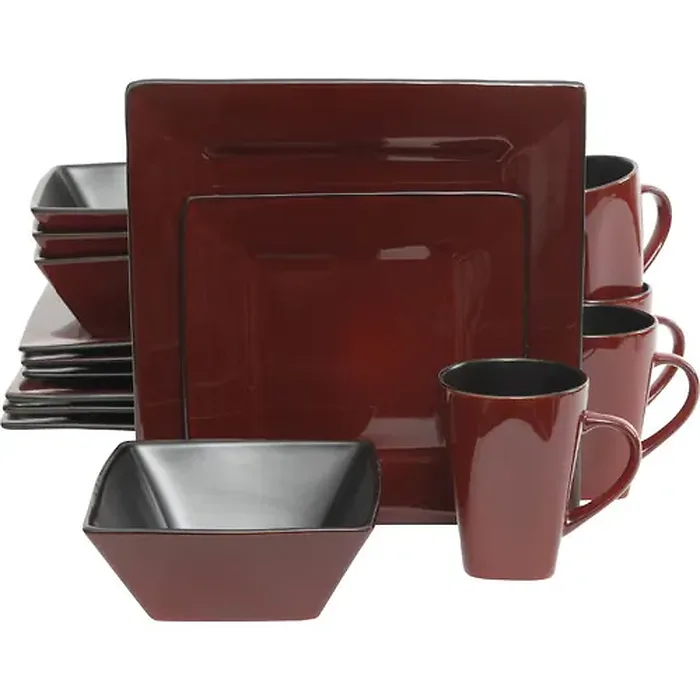 The Gibson Elite Kiesling Square 16-piece Dinnerware Set in blue is the perfect set for a family of four. Bold designs for the bold at heart. Traditional finishing techniques produce differences in color, size and texture, ensuring no two pieces are exactly alike. Blue Reactive Glaze Stoneware. Gibson Kiesling Square 16-piece dinnerware set includes: 4 dinner plates, 4 dessert plates, 4 soup/salad bowls, 4 mugs. Dishwasher and Microwave Safe.