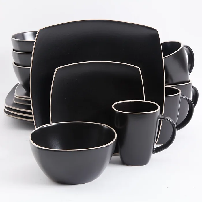 Gibson Soho Lounge Matte 16-Piece Dinnerware Set, Black