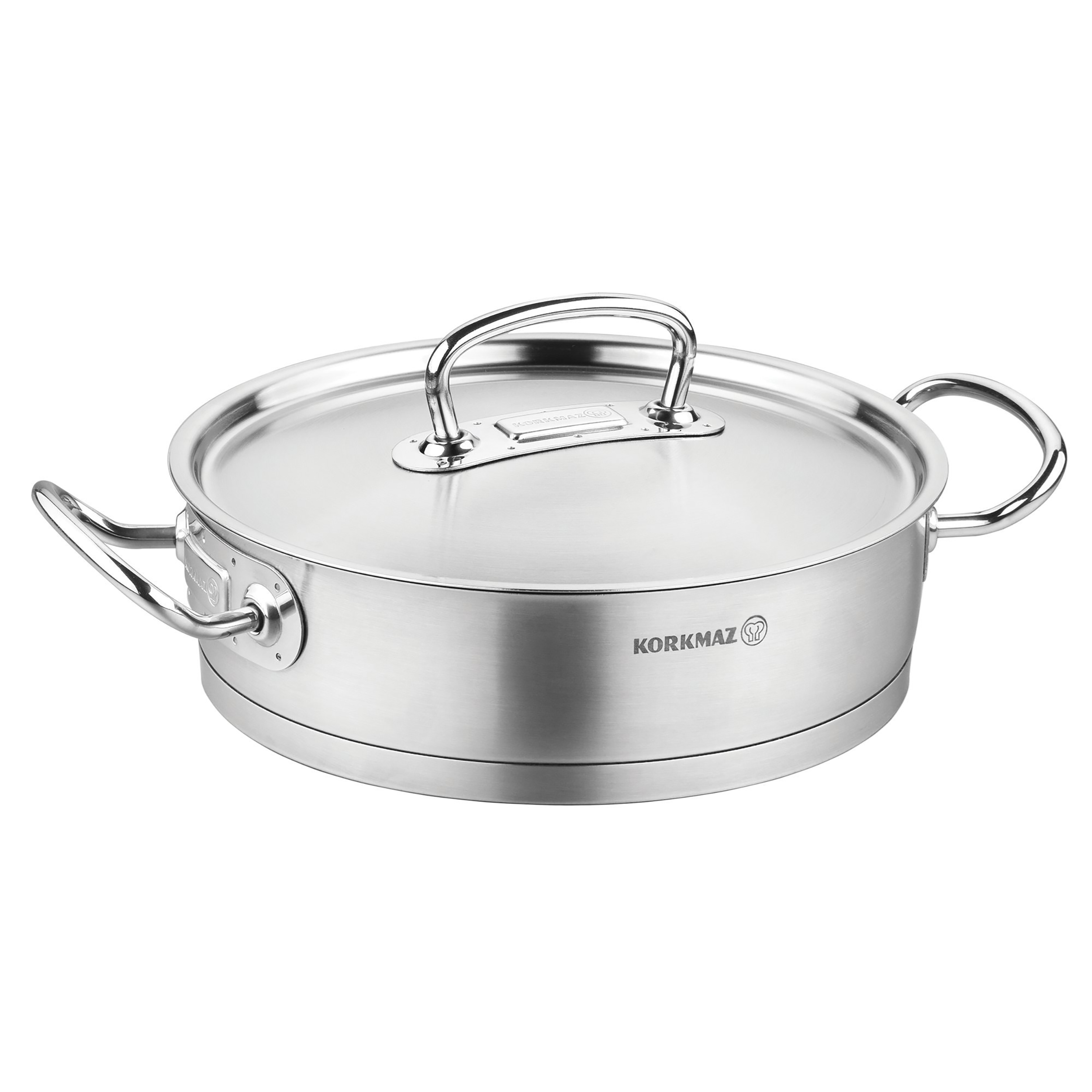Korkmaz Proline Professional Series 1.5 Liter Stainless Steel Low Casserole with Lid in Silver