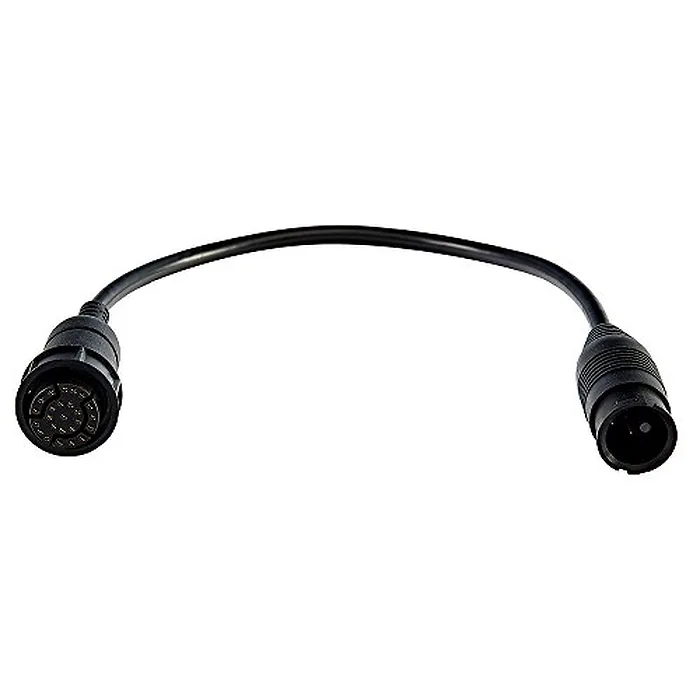 The Raymarine transducer adapter cable allows you to keep your existing 600w Airmar transducer used with a CP370 sonar module and adapts it to your Axiom RV. The 7-pin side connects direct to your Airmar 600w transducer and the 25-pin to the transducer port on the Axiom RV.