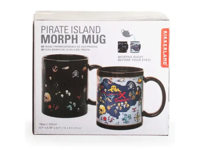 Introducing the Kikkerland Pirate Island Morphing Mug, the perfect companion for your morning coffee or evening tea! This unique mug features a captivating pirate island design that transforms when hot liquid is added, revealing hidden treasures and whimsical nautical themes. A delightful blend of fun and function, it's ideal for any pirate enthusiast or as a quirky gift.