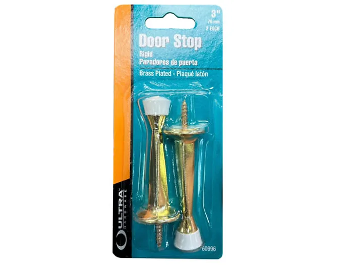 Enhance your home with the Ultra Hardware Brass Plated Rigid Door Stop. This durable two-piece set is designed to prevent doors from swinging and damaging your walls while providing a stylish accent to your decor.