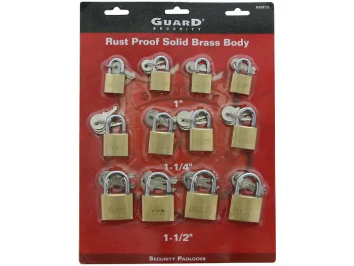 The brass pin cylinder design resists picking and allows for smooth operation, making these locks a reliable choice for all your security needs. This set includes an assortment of padlock sizes: 4 locks measuring 1", 4 locks measuring 1.25", and 4 locks measuring 1.5".