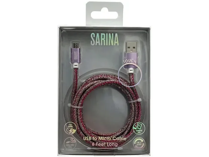 Stay connected and stylish with the Sarina 10-Foot Glitter Micro USB Charging Cable. This vibrant pink cable not only keeps your electronic devices charged but also adds a touch of glamour to your tech accessories. Perfect for charging and syncing various devices like smartphones, tablets, game controllers, and other USB-powered gadgets.
