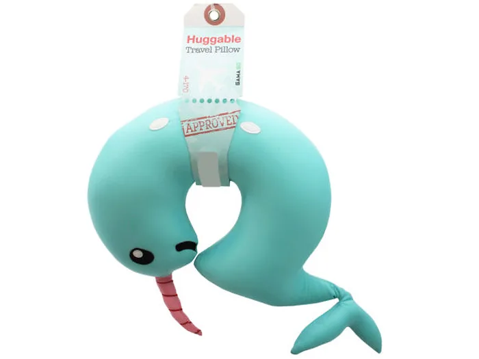 Experience comfort and whimsy on your travels with the Gamago Huggable Narwhal Travel Neck Pillow. This adorable neck pillow provides the support you need while being a charming companion. Made from soft plush material, it ensures a cozy feel whether you're on a long flight or a road trip.
