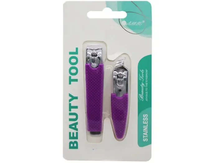 Maintain your nails with the Premium 2 Piece Nail Clipper Set, designed for effortless grooming. This set includes two clippers, ensuring you have the right tool for every nail type. The clippers help prevent bacteria buildup, ingrown nails, and unsightly cuticles. Each clipper is equipped with a protective purple rubber sleeve, providing a comfortable and secure grip. The small-sized clipper features an angled head, making it easy to handle hangnails. Conveniently store this essential set in your daily grooming kit, medicine cabinet, or desk drawer for quick access.