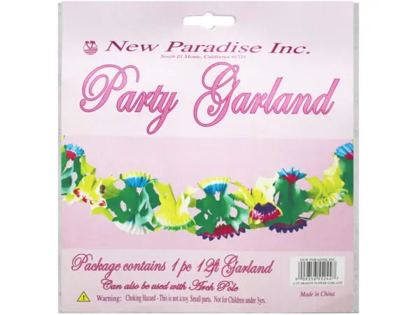 Enhance your tropical-themed parties with our vibrant 12 foot luau flower garland. Perfect for indoor and outdoor decorations, this garland adds a festive touch to any setting.